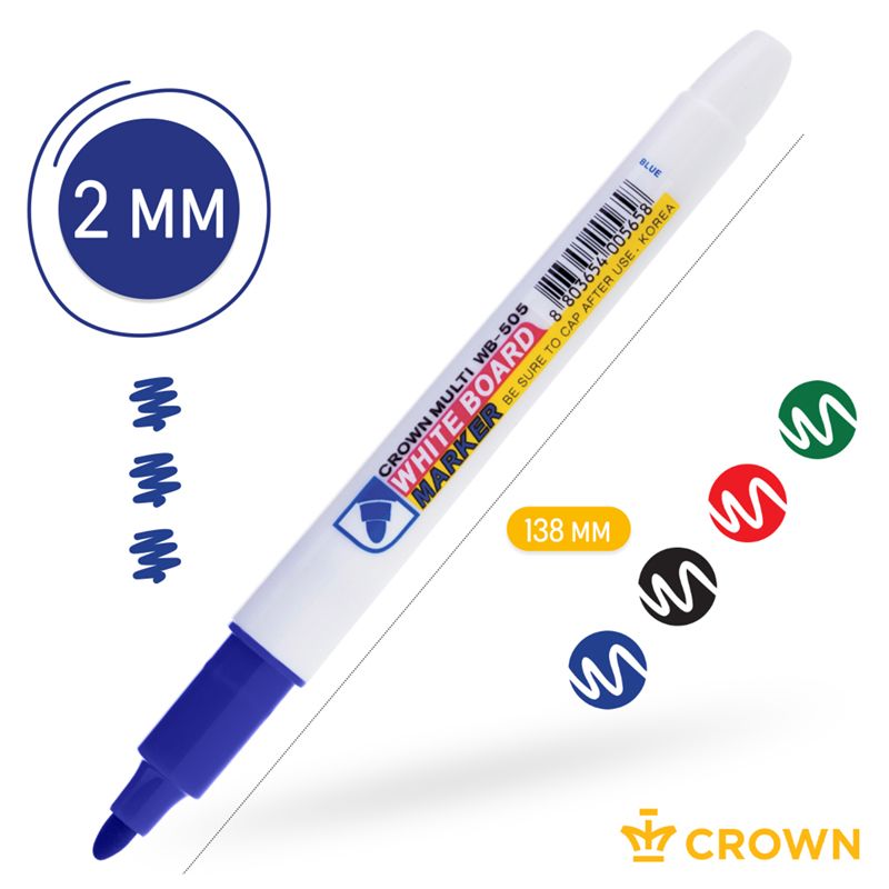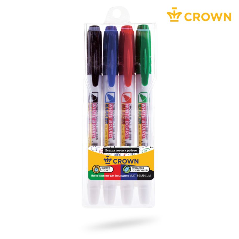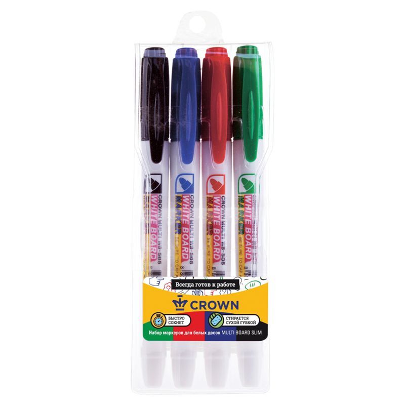 Набор маркеров для белых досок Crown "Multi Board Slim" 04цв., пулевидный, 2мм, чехол с европодвесом