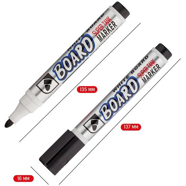 Тонкий корпус удобно лежит в руке у ребенка. Благодаря особому строению пишущего узла чернила дозированно поступают на поверхность, не вытекают из наконечника и не образуют клякс. Чернила на спиртовой основе высыхают на поверхности доски в течении 1-2 секунд. Маркер до 2 дней не высыхает без колпачка, а при закрытом колпачке в течении одного часа полностью восстанавливает свои свойства!