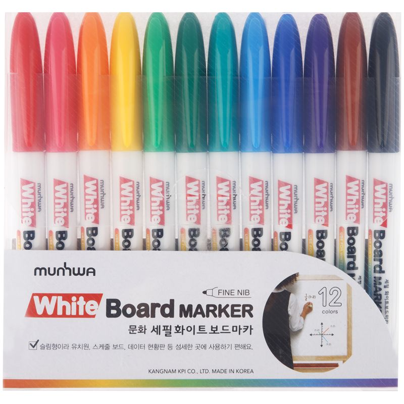 Набор маркеров для белых досок Munhwa 12цв., пулевидный, 2мм