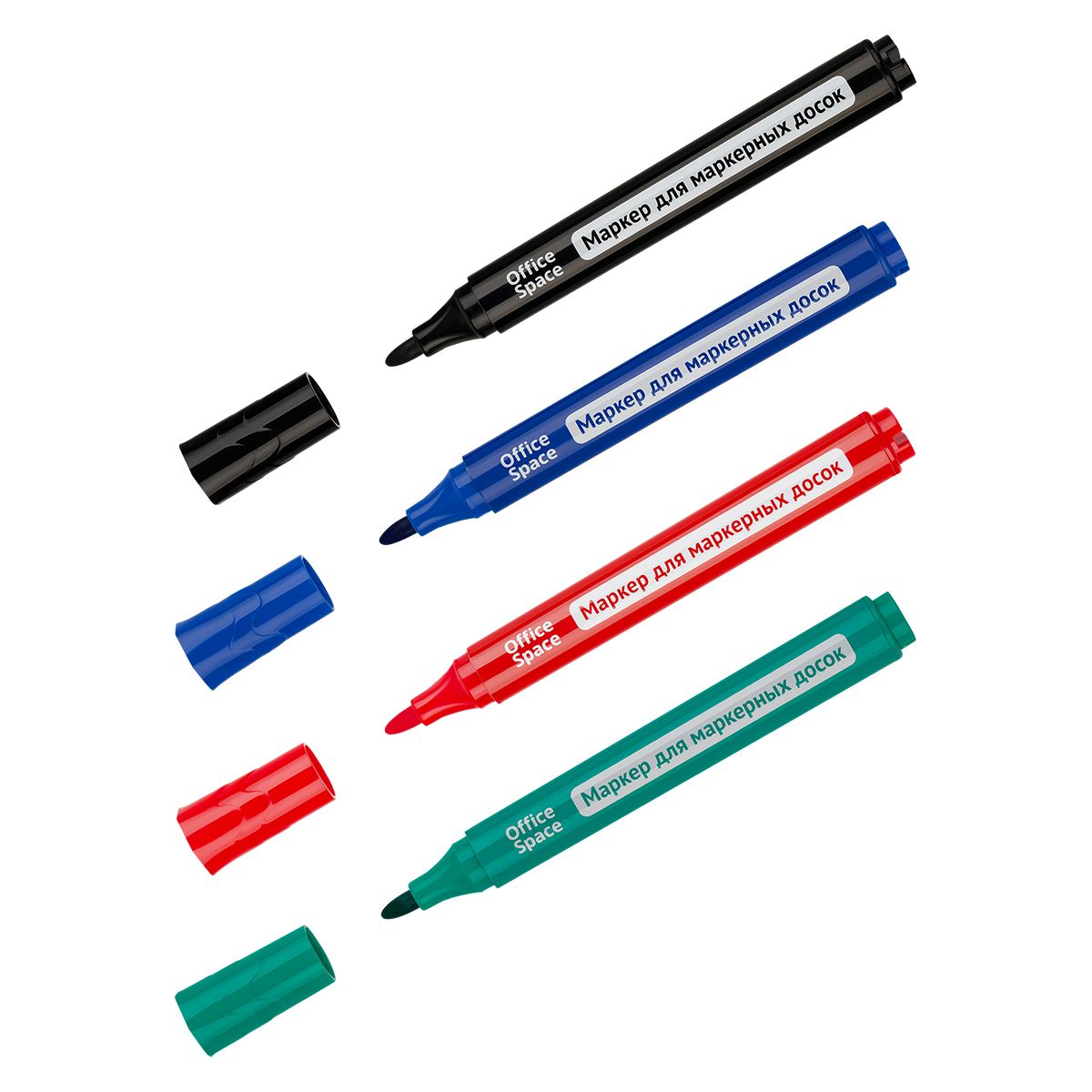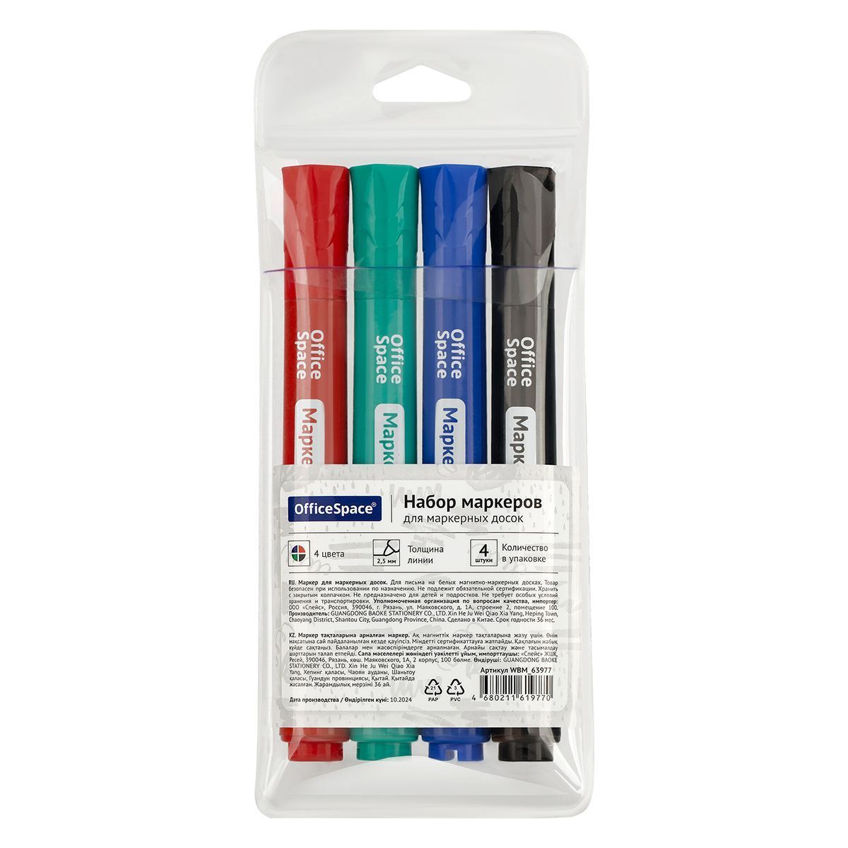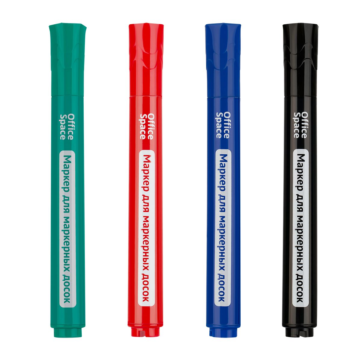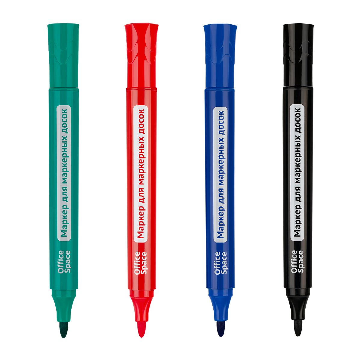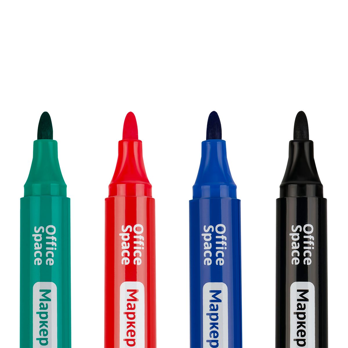 Пулевидный наконечник позволяет проводить равномерные линии толщиной 2,5 мм. Маркер пишет мягко и плавно, не требует сильного нажима. Чернила на спиртовой основе быстро высыхают, легко удаляются губкой и не оставляют разводов. Цвет корпуса соответствует цвету чернил. Чтобы сохранить свойства маркера, его необходимо хранить с плотно закрытым колпачком. Набор состоит из четырёх оттенков: красный, синий, черный, зеленый. Маркеры упакованы в чехол с евпроподвесом, поэтому набор легко разместить на витрине.