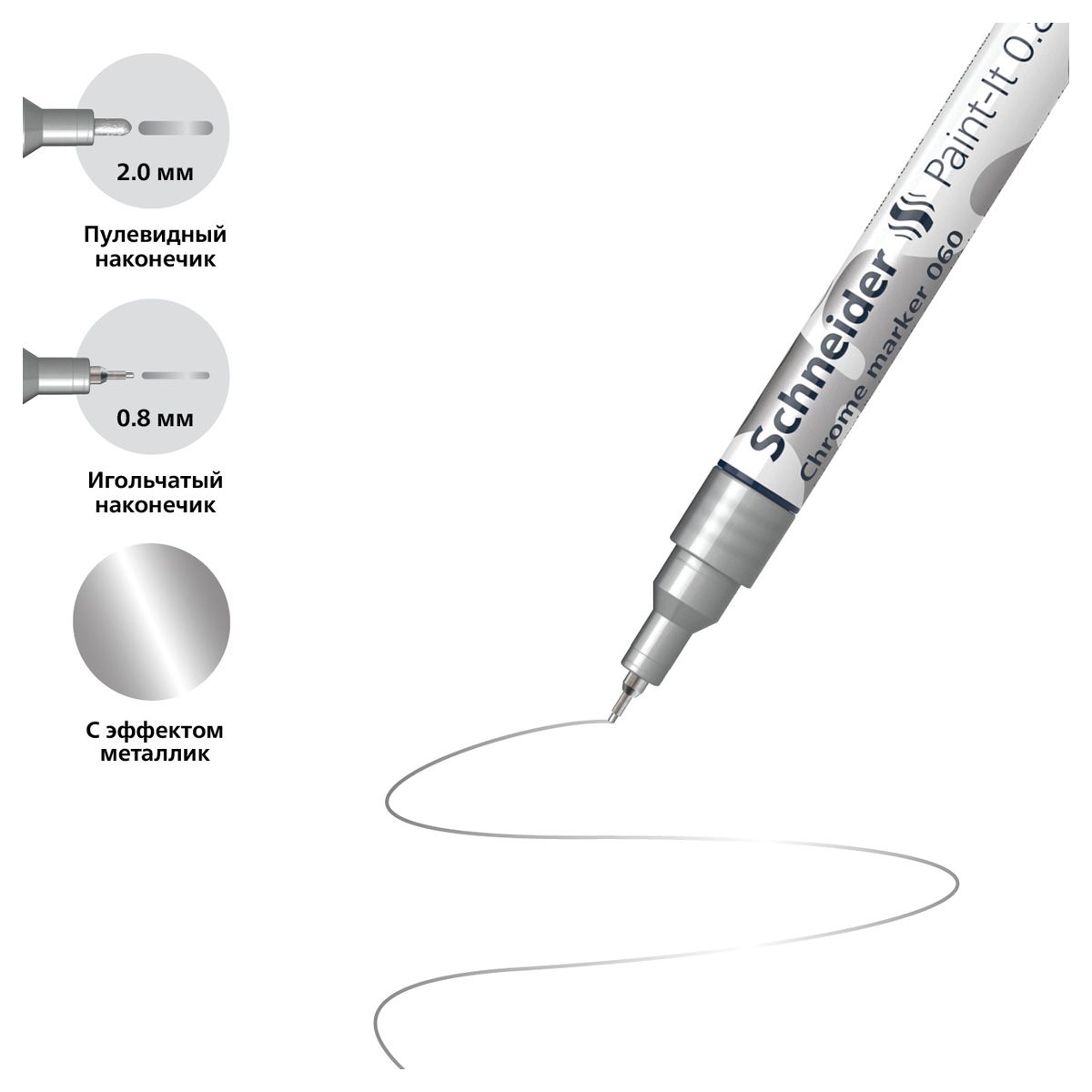 Набор маркеров для декорирования Schneider "Paint-It 060/061" 2шт., хром, 0,8мм + 2мм, картон. упаковка
