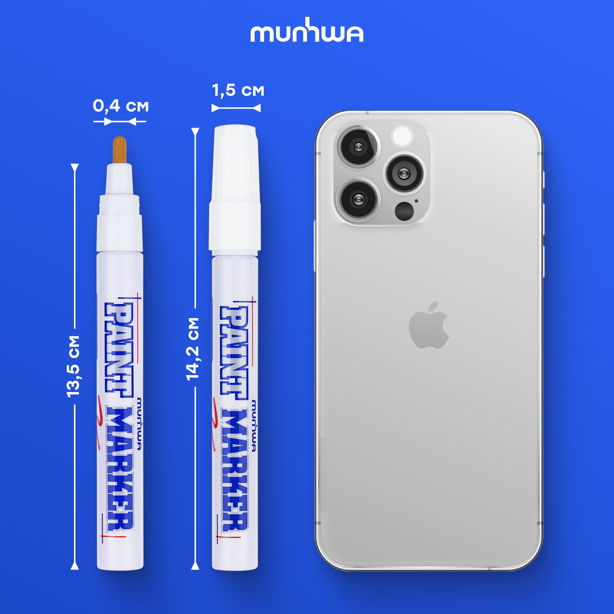 Paint Marker подходит для реставрации дефектов на бытовой технике, обуви, кузове автомобиля, а также надписей на каменных плитах. Маркер-краска MunHwa имеет широкое применения в дизайне, декорировании и оформлении.