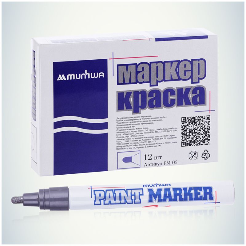 Paint Marker подходит для реставрации дефектов на бытовой технике, обуви, кузове автомобиля, а также надписей на каменных плитах. Маркер-краска MunHwa имеет широкое применения в дизайне, декорировании и оформлении.