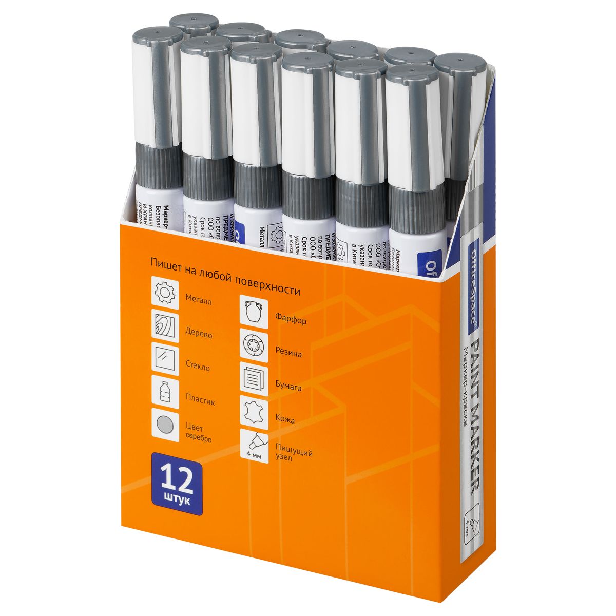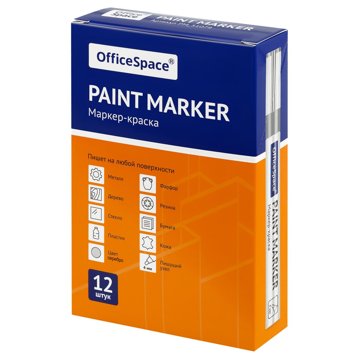 Маркер-краска OfficeSpace серебряная, 1-4мм, нитро-основа