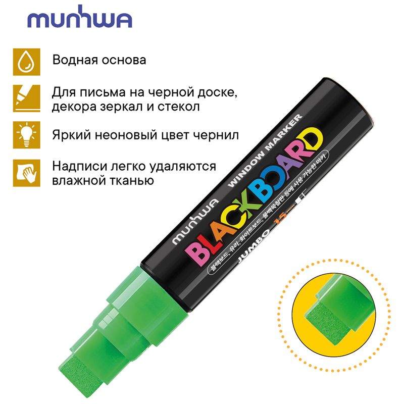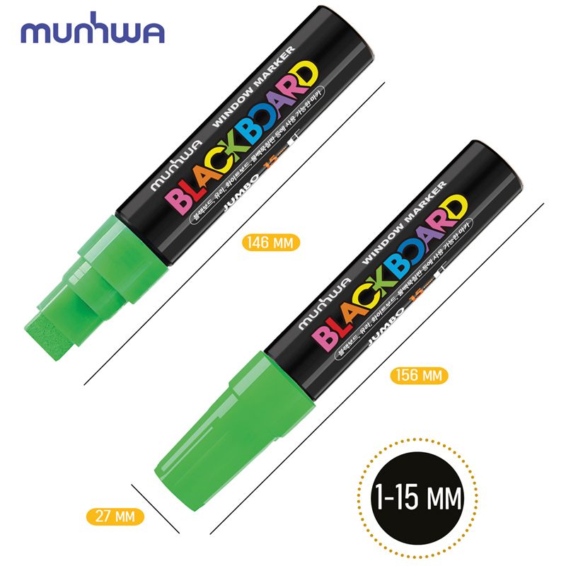 Маркер меловой MunHwa "Black Board Jumbo" зеленый, 15мм, водная основа