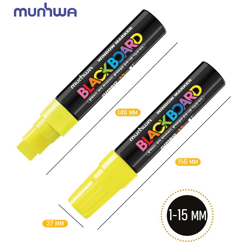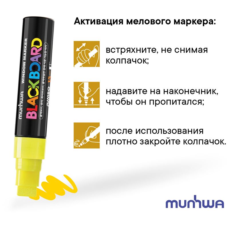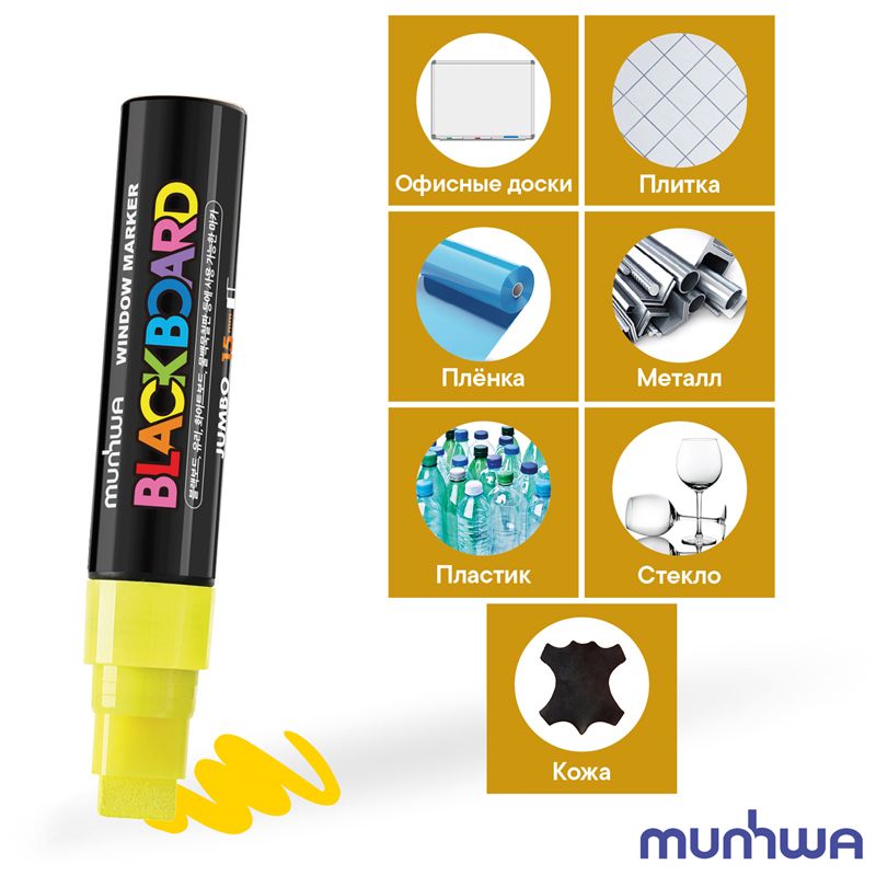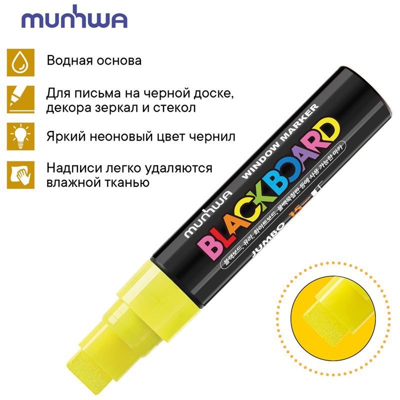 Маркер меловой MunHwa "Black Board Jumbo" желтый, 15мм, водная основа