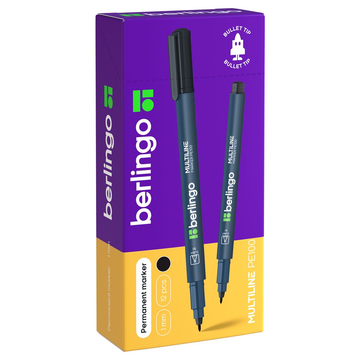 Маркер перманентный Berlingo "Multiline PE100" черный, пулевидный, 1мм