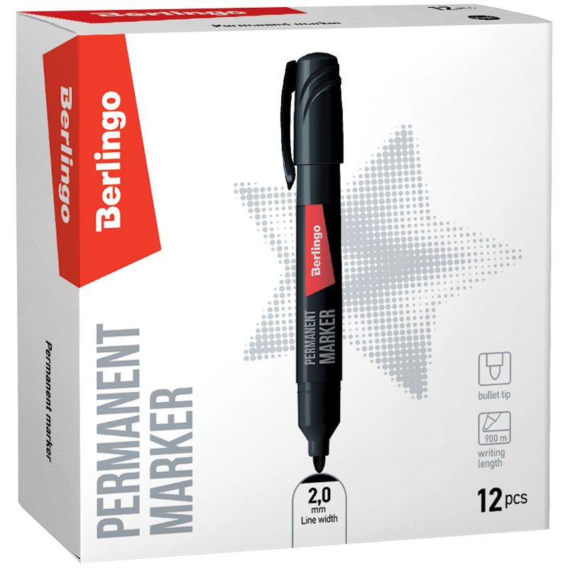 Маркер перманентный Berlingo "Multiline PE200" черный, пулевидный, 2мм
