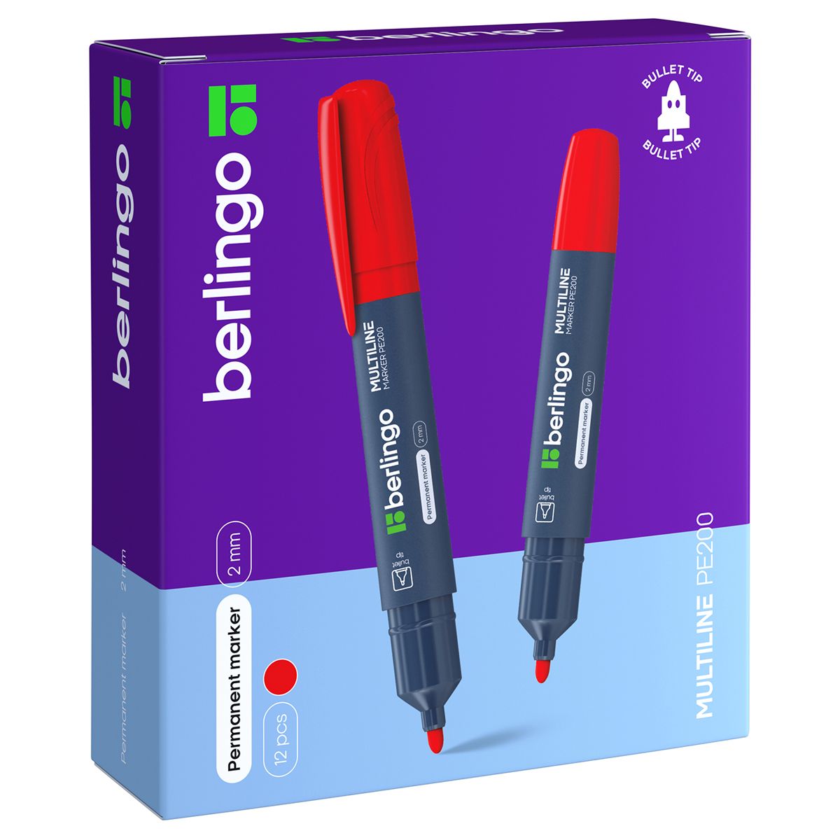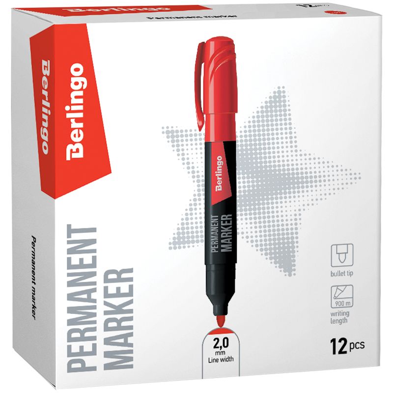 Маркер перманентный Berlingo "Multiline PE200" красный, пулевидный, 2мм