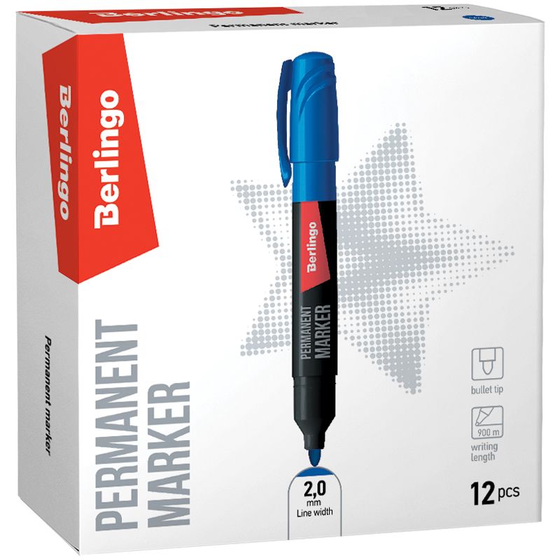 Маркер перманентный Berlingo "Multiline PE200" синий, пулевидный, 2мм