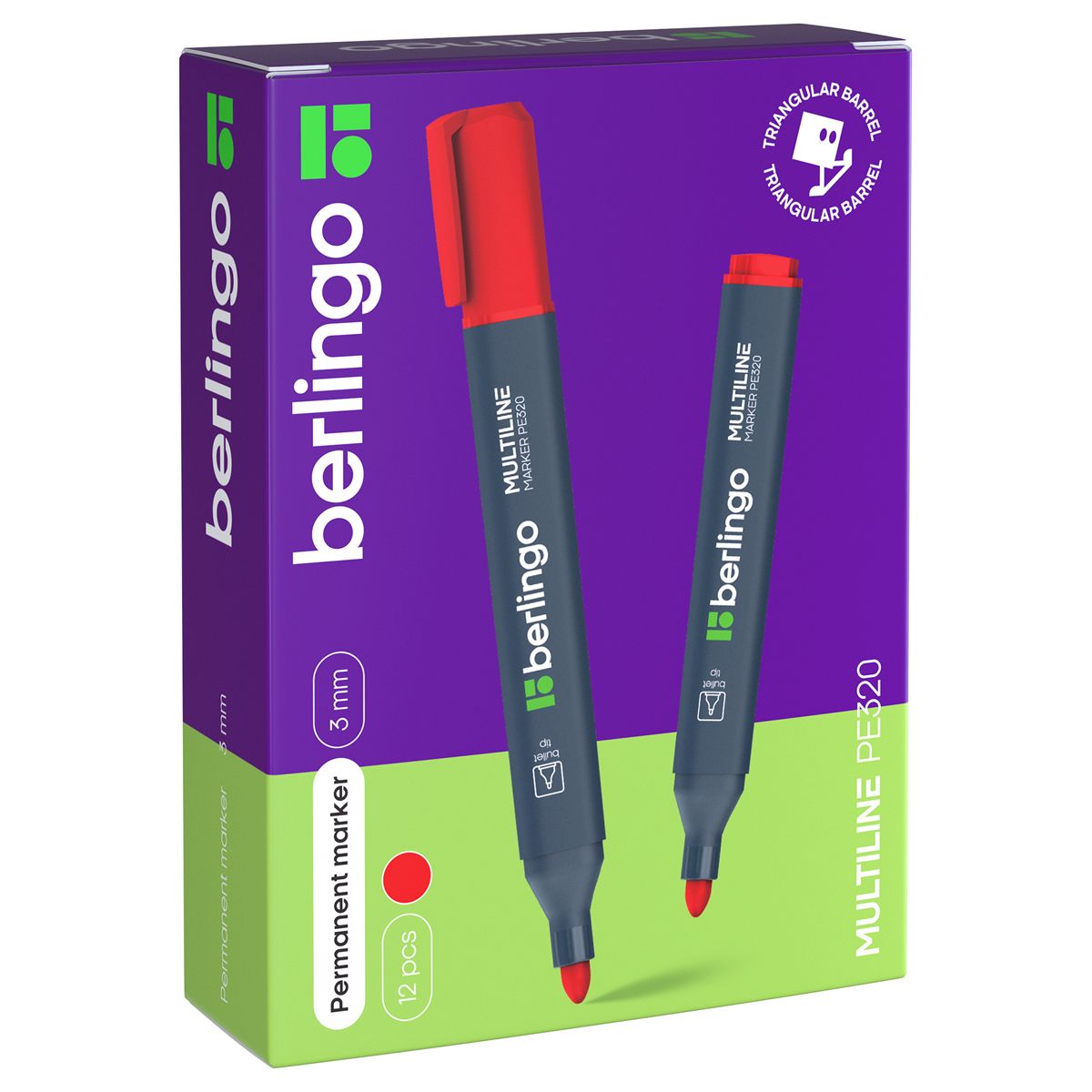 Маркер перманентный Berlingo "Multiline PE320" красный, пулевидный, трехгранный, 3мм