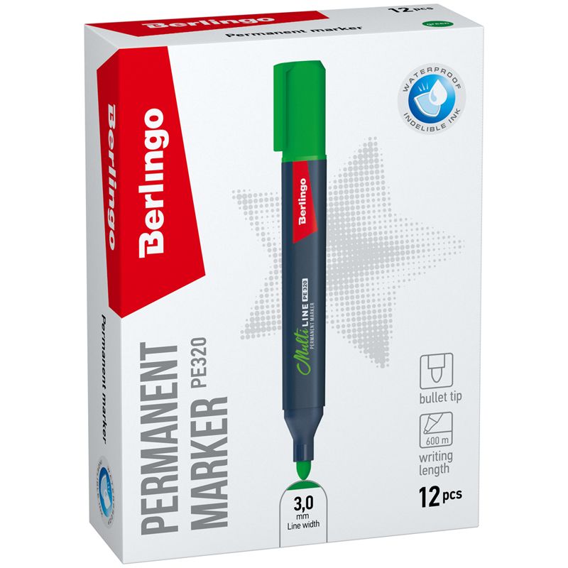 Маркер перманентный Berlingo "Multiline PE320" зеленый, пулевидный, трехгранный, 3мм