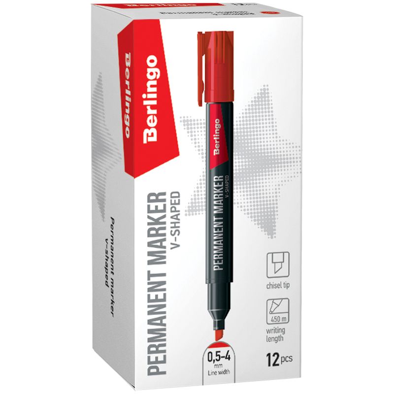 Маркер перманентный Berlingo "Multiline PE400" красный, скошенный, 0,5-4мм