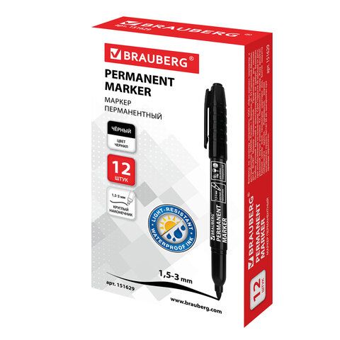 Маркер перманентный BRAUBERG, ЧЕРНЫЙ, круглый наконечник, 1,5-3 мм, 151629
