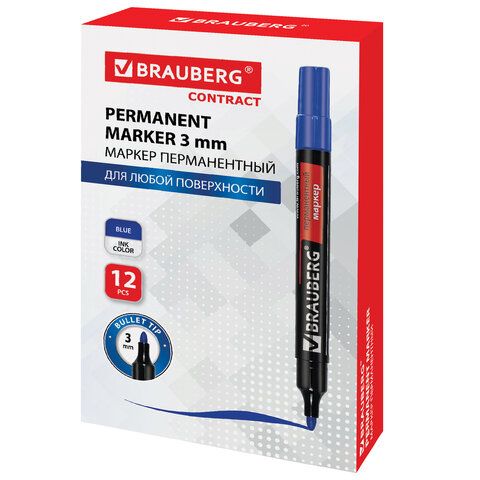 Маркер перманентный BRAUBERG "Contract", СИНИЙ, круглый наконечник, 3 мм, 150466