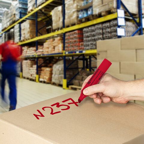 Маркер перманентный BRAUBERG "JUMBO", КРАСНЫЙ, ШИРОКАЯ ЛИНИЯ ПИСЬМА, скошенный наконечник, 3-10 мм, 151226