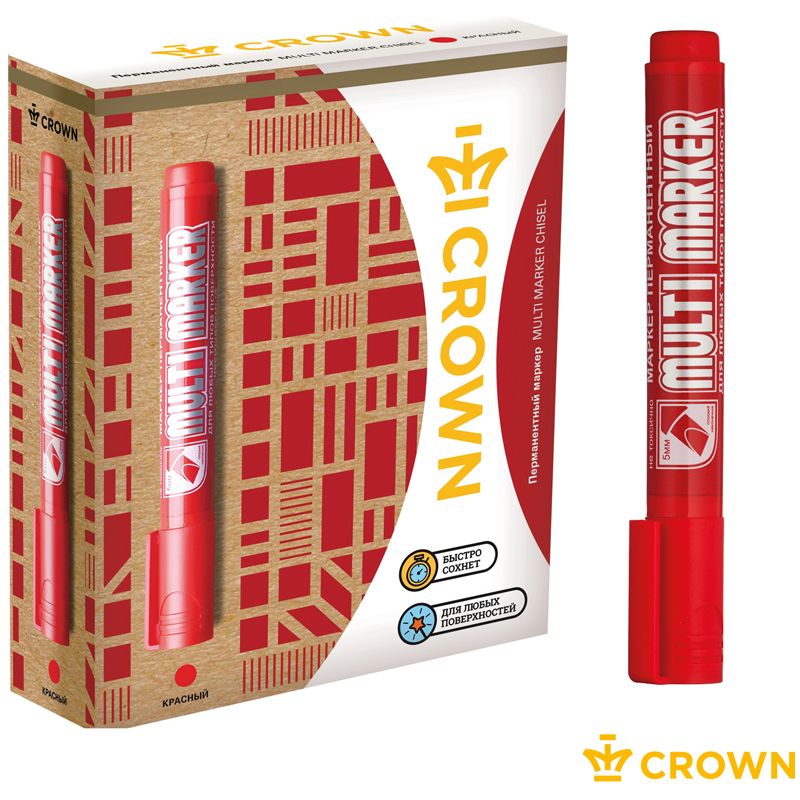 Маркер перманентный Crown "Multi Marker Chisel" красный, скошенный, 5мм