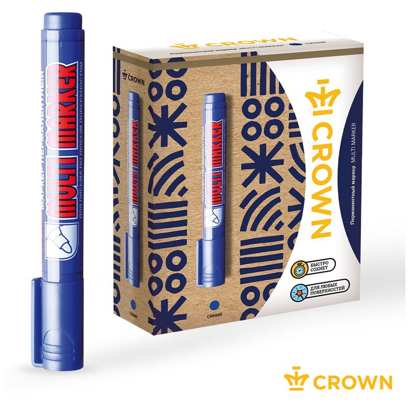 Маркер перманентный Crown "Multi Marker" синий, пулевидный, 3мм