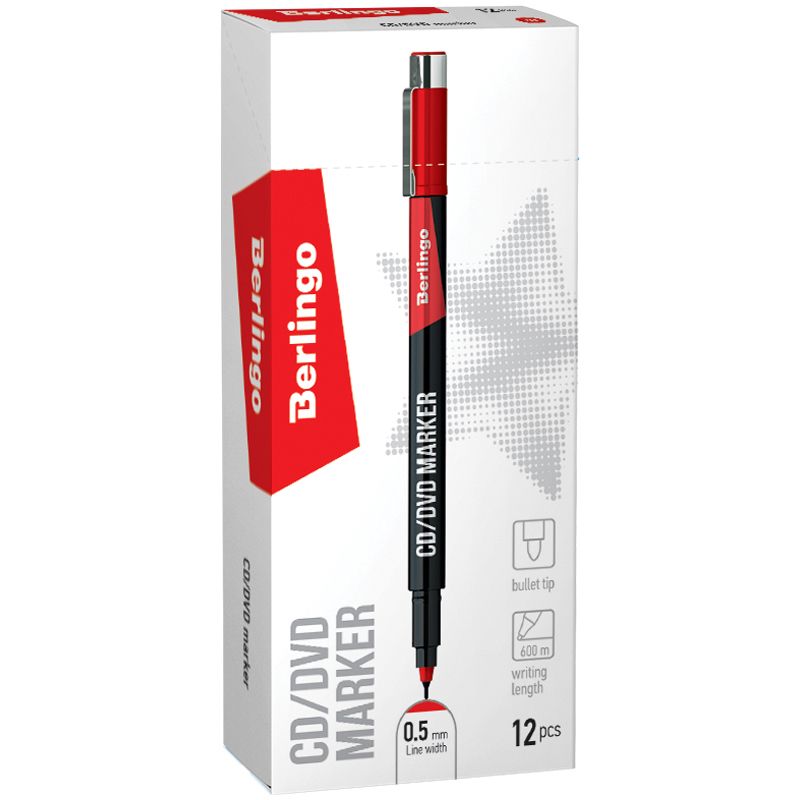 Маркер перманентный для CD/DVD Berlingo "Multiline PE50", красный, 0,5мм
