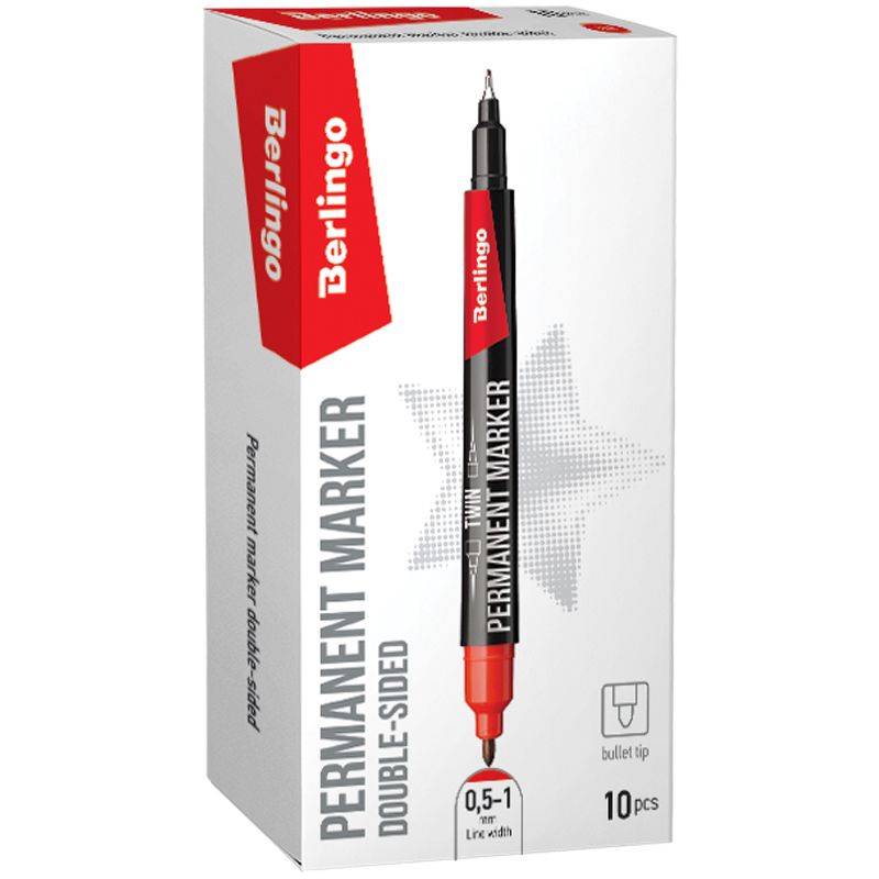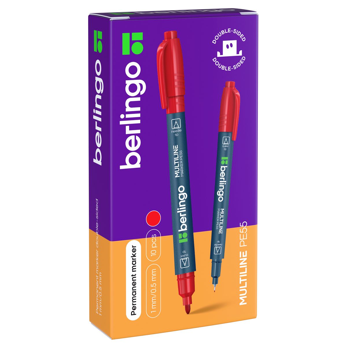 Маркер перманентный двухсторонний Berlingo "Multiline PE55" красный, пулевидный, 0,5/1мм