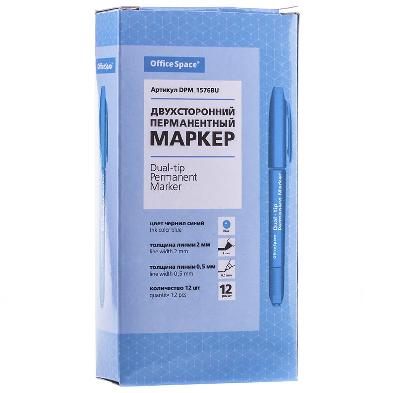 Маркер перманентный двухсторонний OfficeSpace синий, пулевидный, 0,8/2,2мм