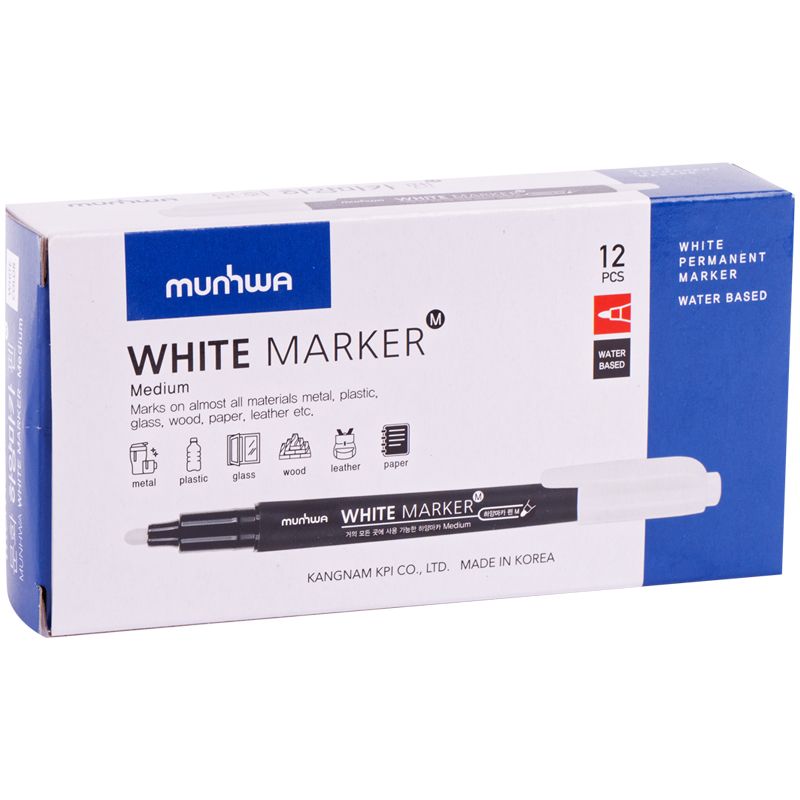 Маркер перманентный MunHwa белый, пулевидный, 2-4мм