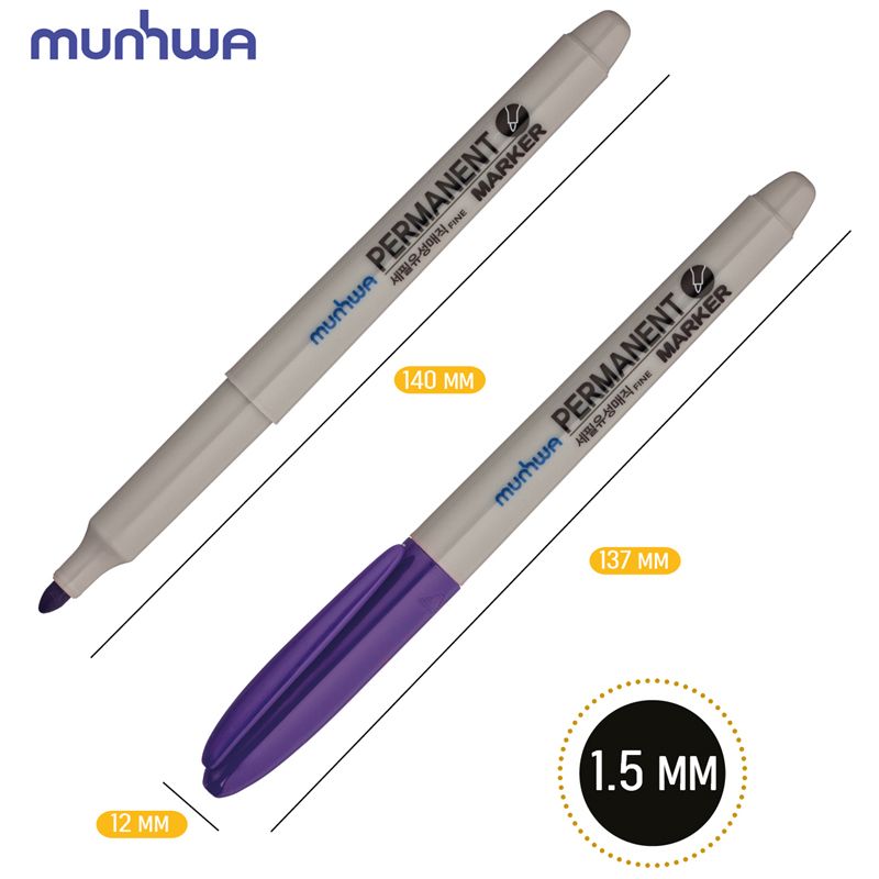 Маркер перманентный MunHwa фиолетовый, пулевидный, 1,5мм