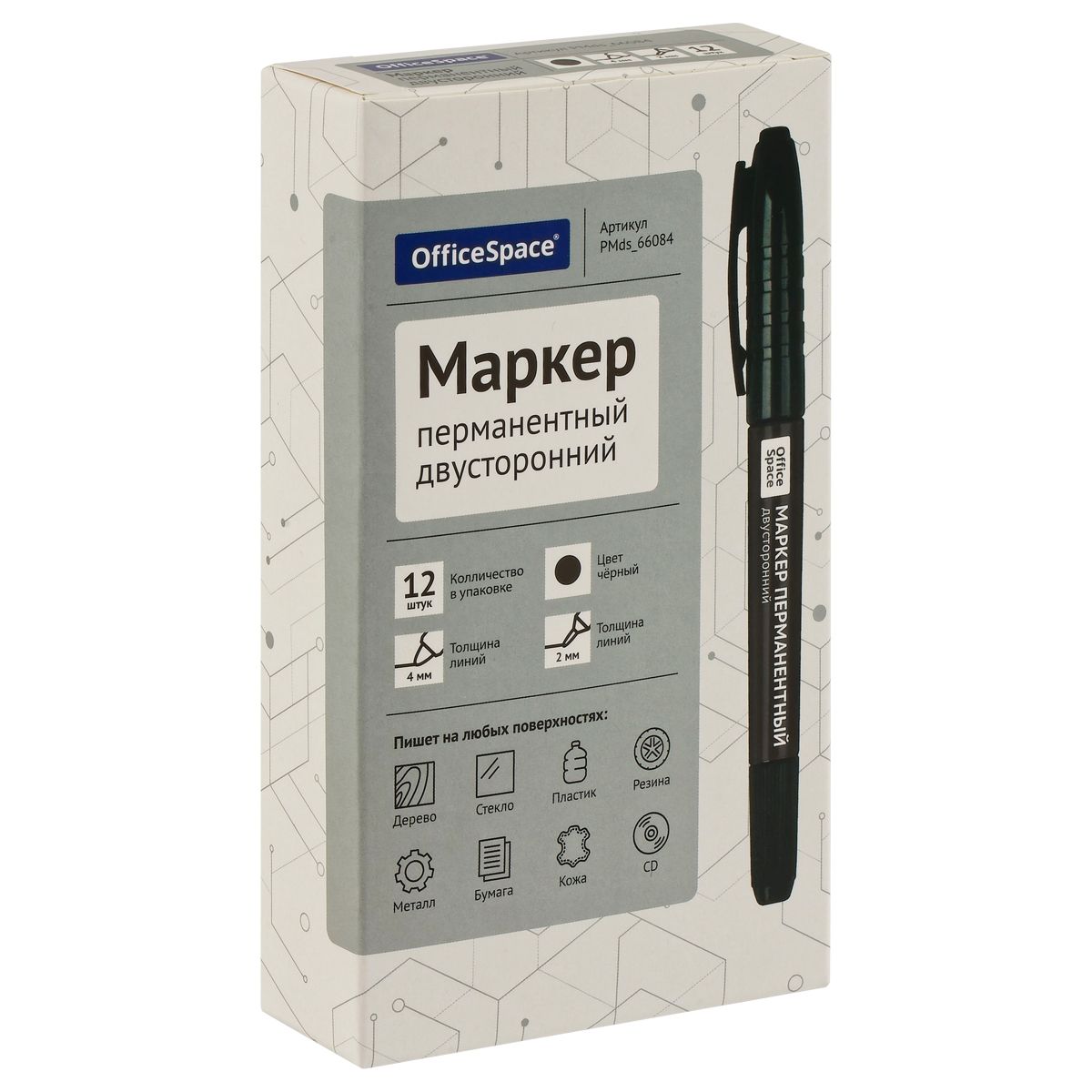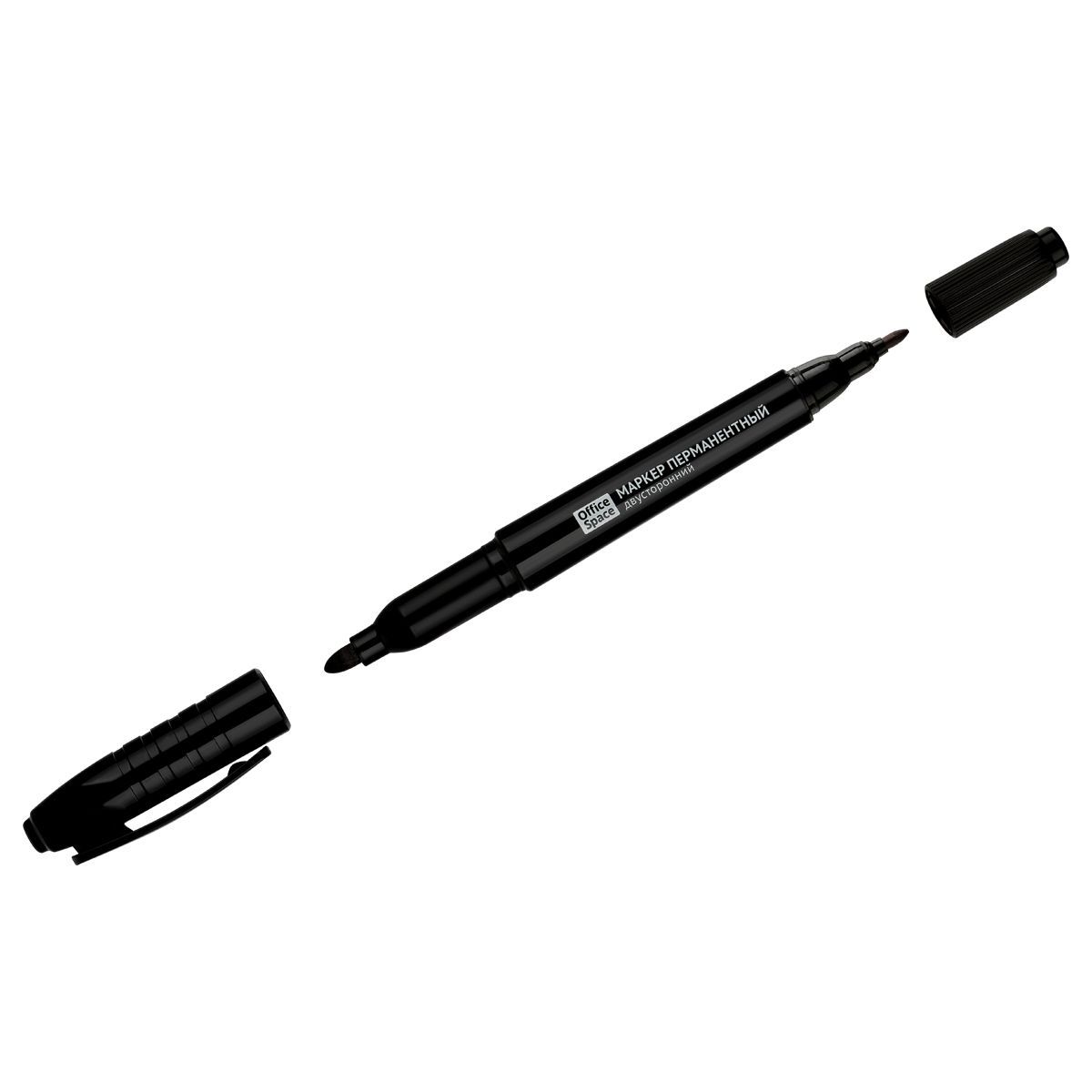 Маркер перманентный OfficeSpace двусторонний, черный, круглый наконечник, 2/4мм