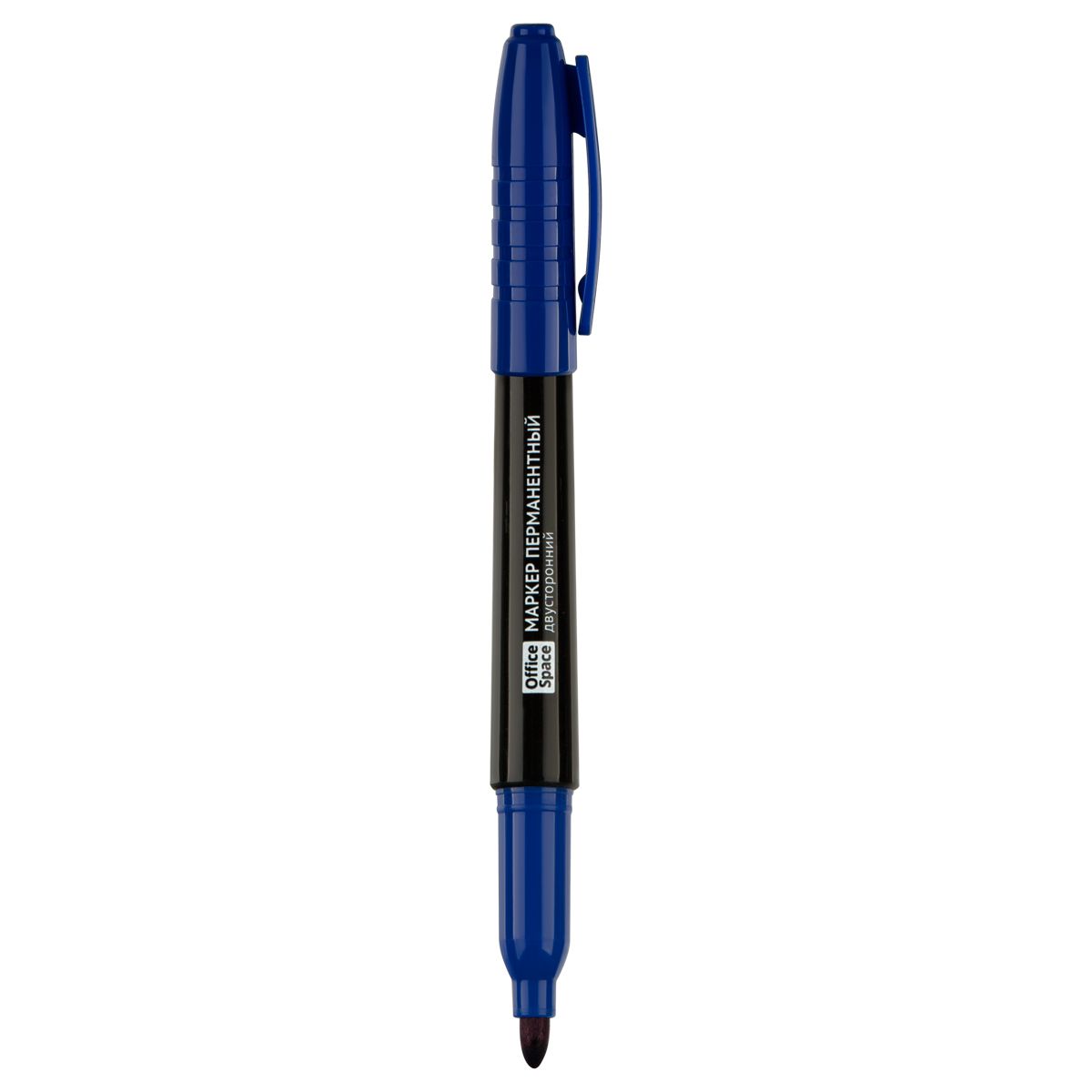 Маркер перманентный OfficeSpace двусторонний, синий, круглый наконечник, 2/4мм