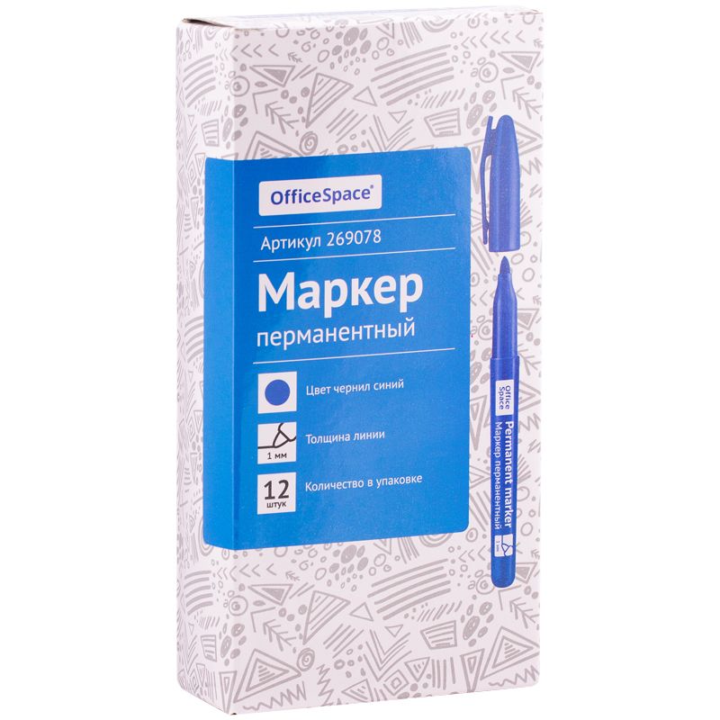Маркер перманентный OfficeSpace синий, пулевидный, 1,0мм