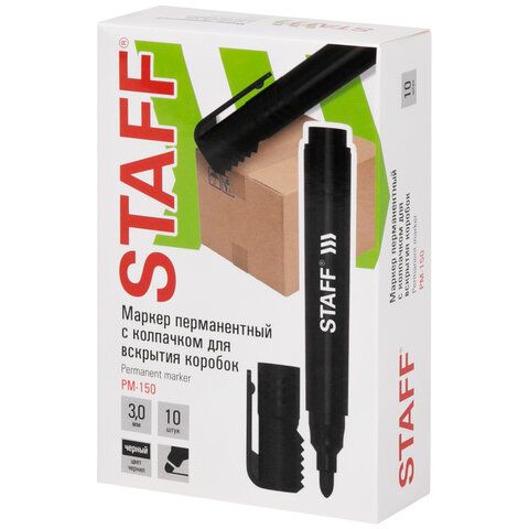 Маркер перманентный с колпачком для вскрытия коробок STAFF "Basic" LOGISTIC PM-150, ЧЕРНЫЙ, 3 мм, 152201