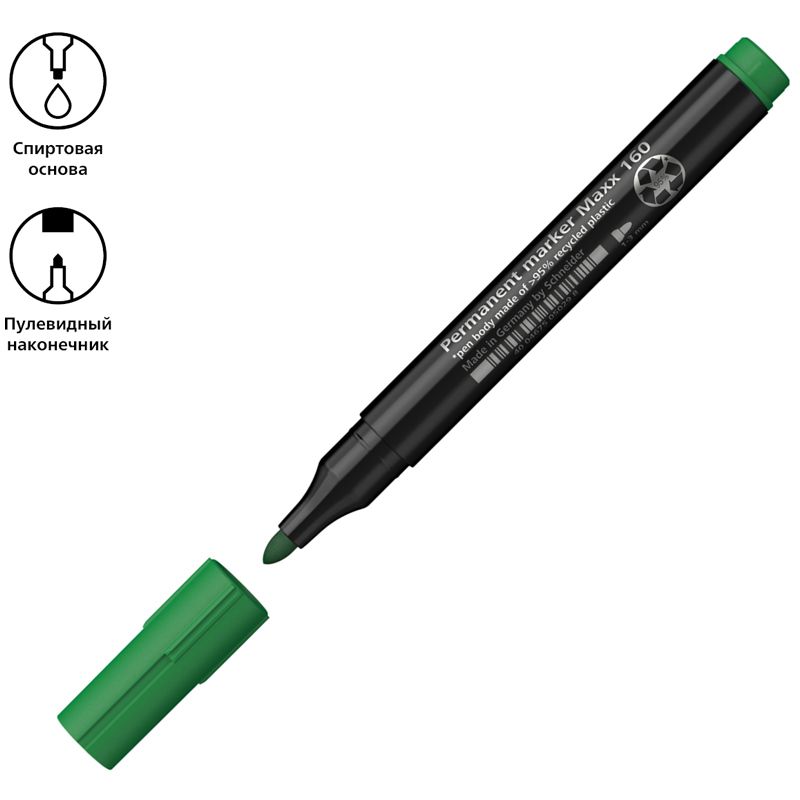Маркер перманентный Schneider "Maxx 160" зеленый, пулевидный, 3мм