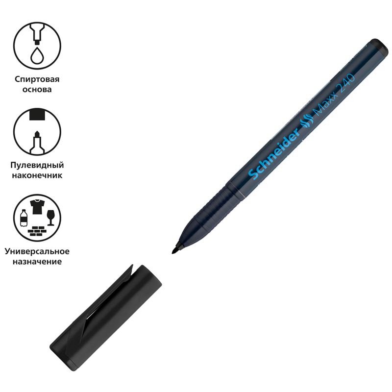 Маркер перманентный Schneider "Maxx 240" черный, пулевидный, 2мм