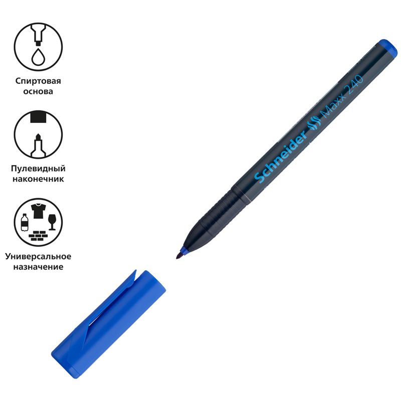 Маркер перманентный Schneider "Maxx 240" синий, пулевидный, 2мм