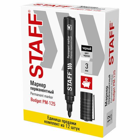 Маркер перманентный STAFF "Basic Budget PM-125", ЧЕРНЫЙ, ВЫГОДНАЯ УПАКОВКА, КОМПЛЕКТ 12 шт., 3 мм, 880598