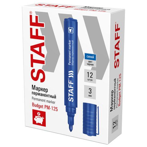 Маркер перманентный STAFF "Basic Budget PM-125", СИНИЙ, круглый наконечник 3 мм, 152175