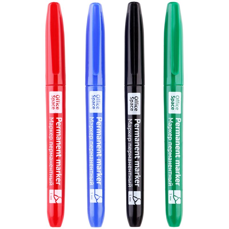 Набор маркеров перманентных OfficeSpace 04цв., пулевидный, 1мм, чехол с европодвесом