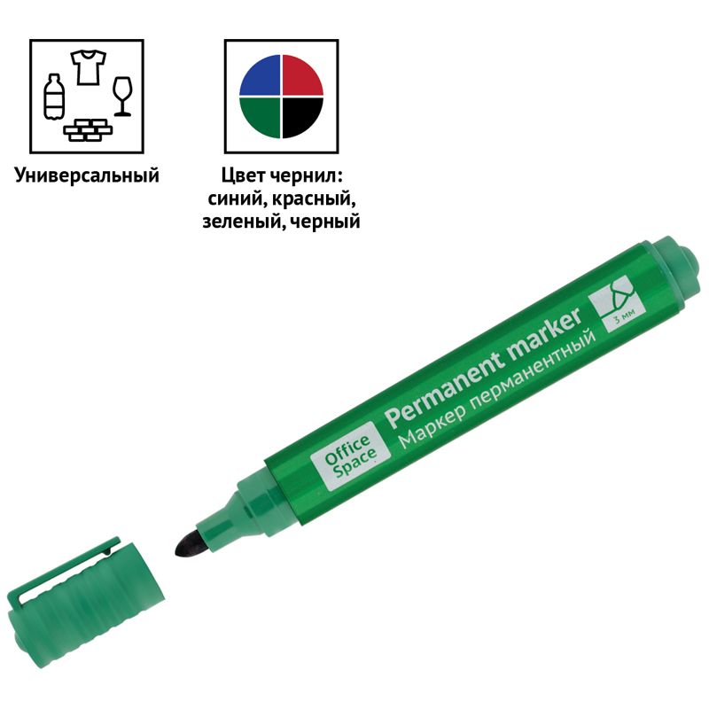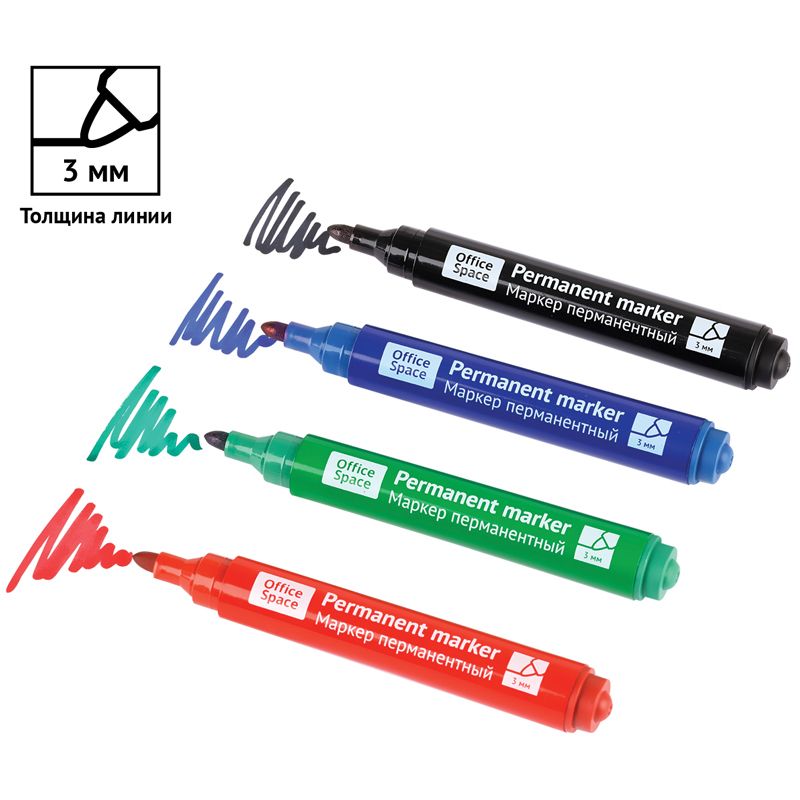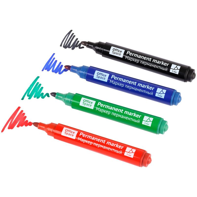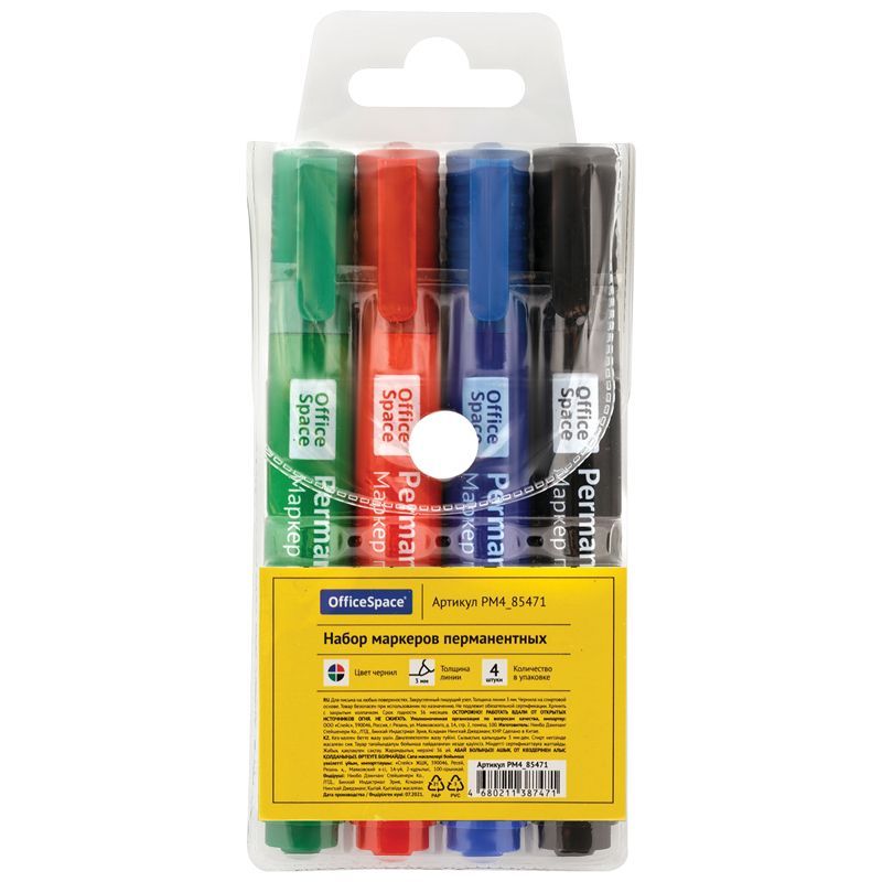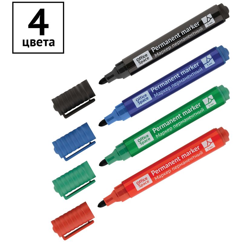 Набор маркеров перманентных OfficeSpace "8004А" 04цв., пулевидный, 3мм, чехол с европодвесом