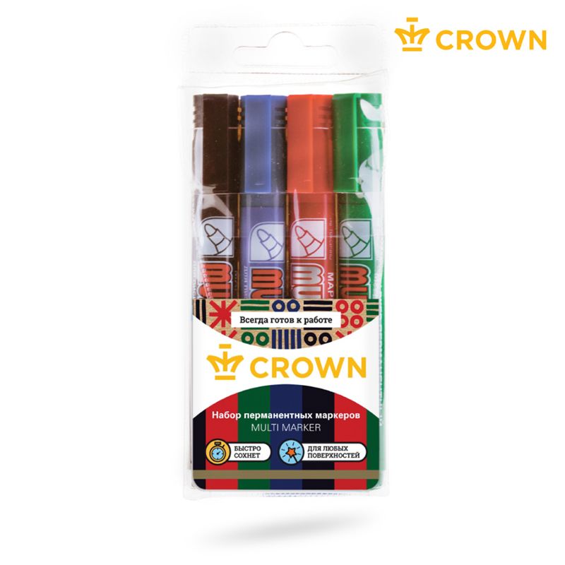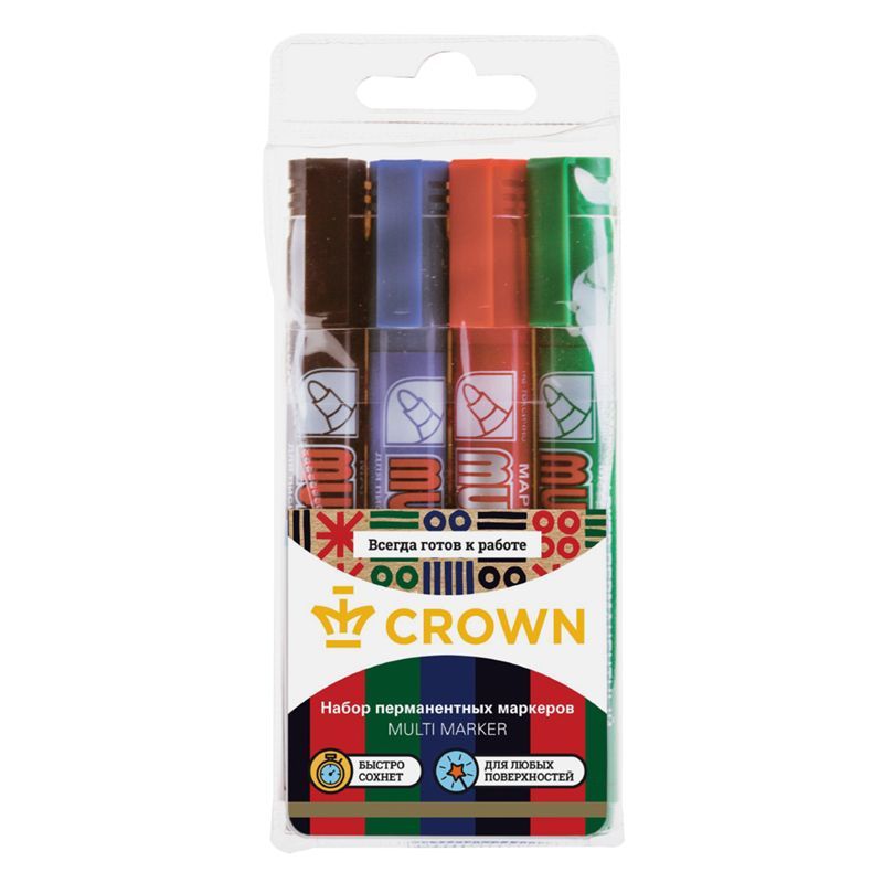 Набор перманентных маркеров Crown "Multi Marker" 04цв., пулевидный, 3,0мм, чехол с европодвесом