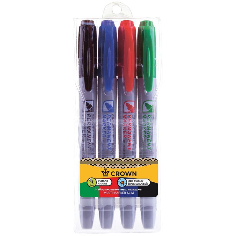 Набор перманентных маркеров Crown "Multi Marker Slim" 04цв., пулевидный, 2,0мм, чехол с европодвесом