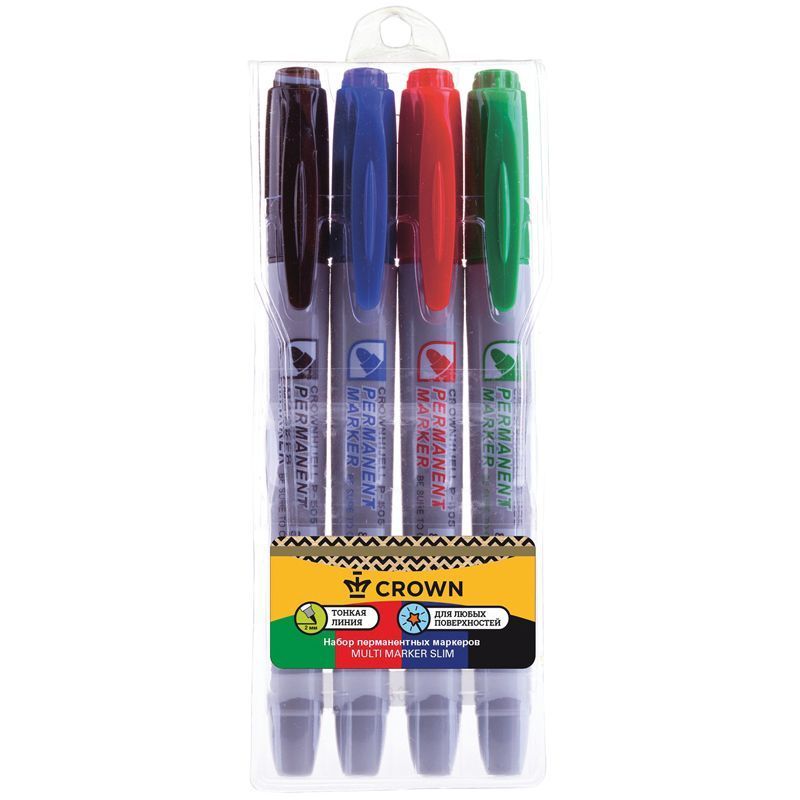 Набор перманентных маркеров Crown "Multi Marker Slim" - универсальное решение для маркировки на всех типах поверхностей: металл, дерево, резина, бетон/камень/кирпич, стекло, пленка, картон и др.