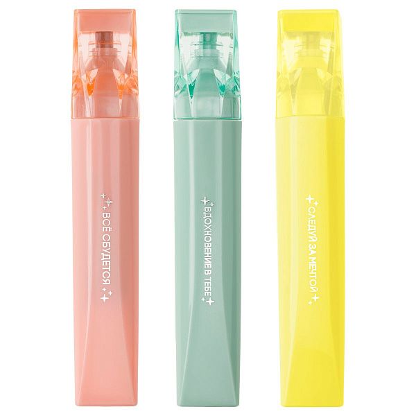 Ещё один интересный выбор — текстовыделитель MESHU "Diamond" с пастельными чернилами и скошенным наконечником. Благодаря форме корпуса он удобен в использовании, а толщина линии регулируется от 1 до 4 мм, что делает его универсальным инструментом для работы с различными шрифтами и стилями текста.