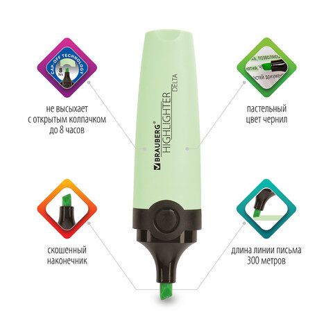 Ещё один интересный выбор — текстовыделитель MESHU "Diamond" с пастельными чернилами и скошенным наконечником. Благодаря форме корпуса он удобен в использовании, а толщина линии регулируется от 1 до 4 мм, что делает его универсальным инструментом для работы с различными шрифтами и стилями текста.
