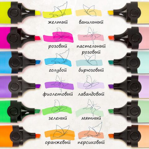 Набор текстовыделителей 12 ЦВЕТОВ на подставке, BRAUBERG "DELTA", линия 1-5 мм, 151737