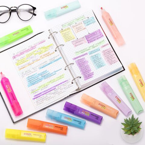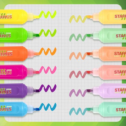 Набор текстовыделителей 12 ЦВЕТОВ, STAFF "EVERYDAY HL-720", 6 неоновых цветов + 6 пастельных цветов, линия 1-5 мм, 152557