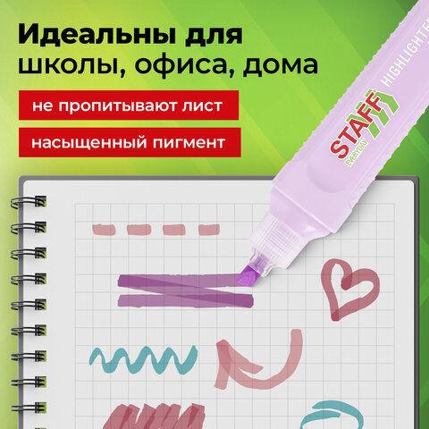 Набор текстовыделителей 4 ПАСТЕЛЬНЫХ ЦВЕТА, STAFF "EVERYDAY HL-707", линия 1-5 мм, скошенный наконечник, 152549