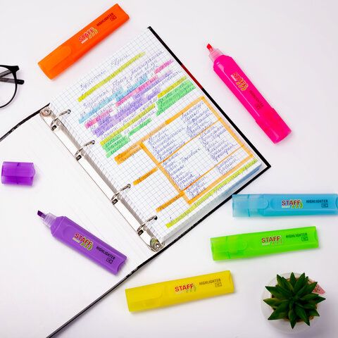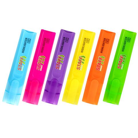 Набор текстовыделителей 6 НЕОНОВЫХ ЦВЕТОВ, STAFF "EVERYDAY HL-720", линия 1-5 мм, скошенный наконечник, 152556