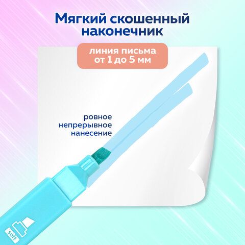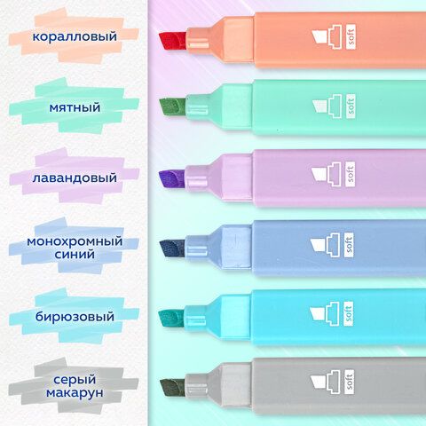 Набор текстовыделителей 6 ПАСТЕЛЬНЫХ ЦВЕТОВ, BRAUBERG "Macaroon", мягкий скошенный наконечник 1-5 мм, 152515