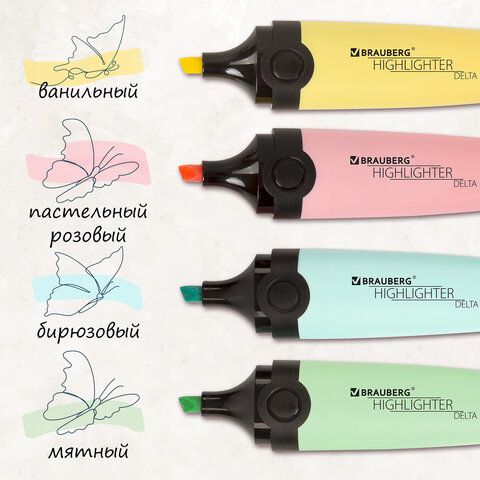Набор текстовыделителей BRAUBERG 4 шт., АССОРТИ, "DELTA PASTEL", линия 1-5 мм, 151735