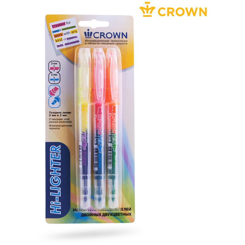 Набор текстовыделителей двухсторонних Crown "Multi Hi-Lighter Twin" 3шт., 06цв., 3/2мм, блистер
